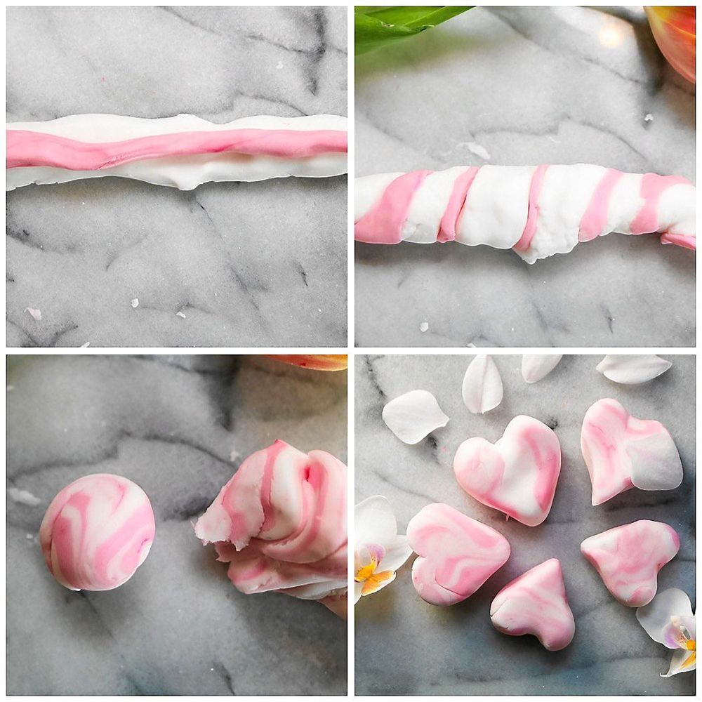 5. Tryck ihop den vita och den färgade degen, vrid degen flera varv tills den blir marmorerad.