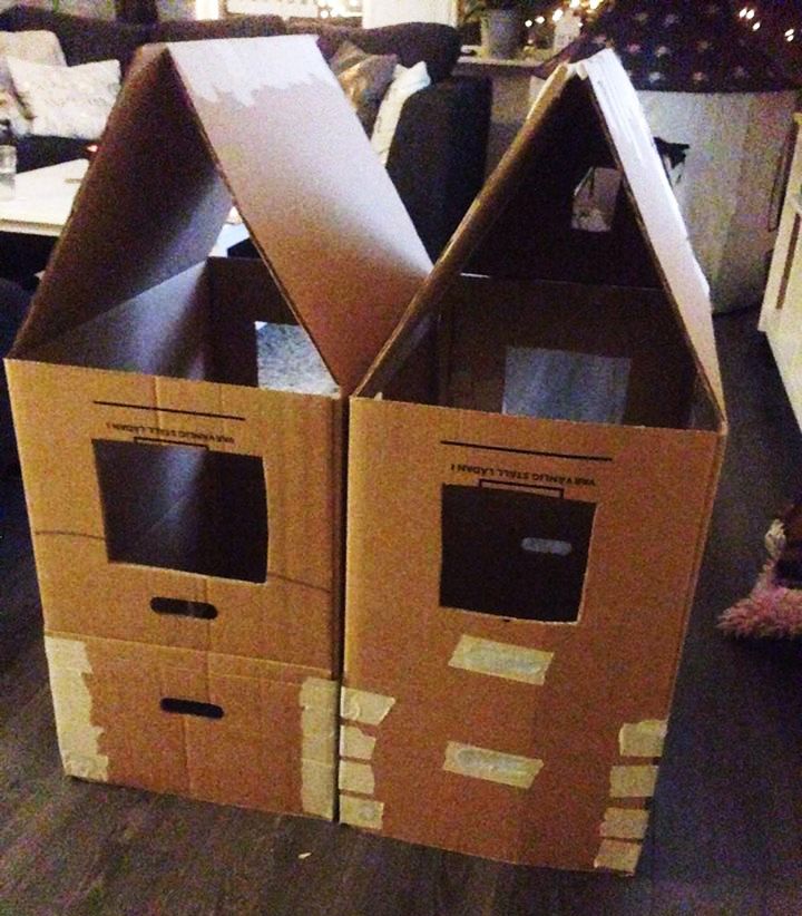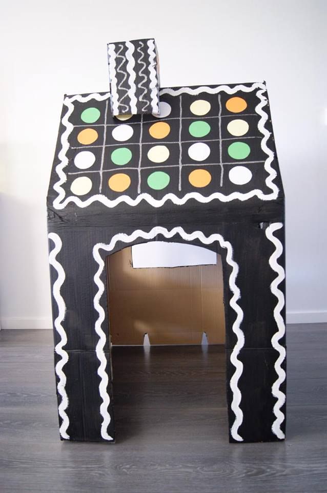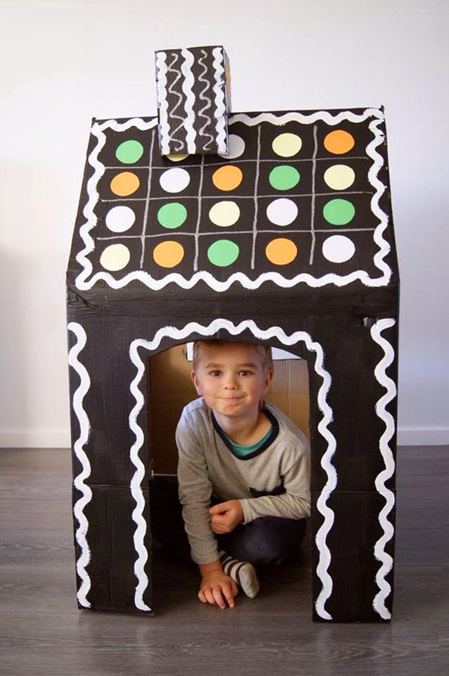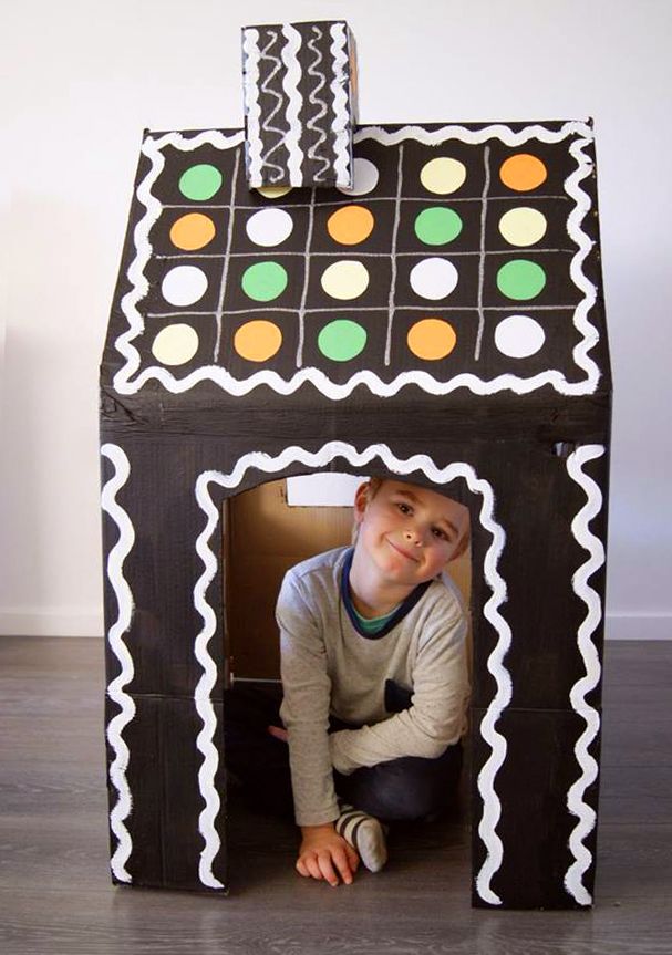 Vilken fantastisk mamma! Med flyttkartonger och färg byggde Emelie en pepparkakskoja till sin son Lennon.