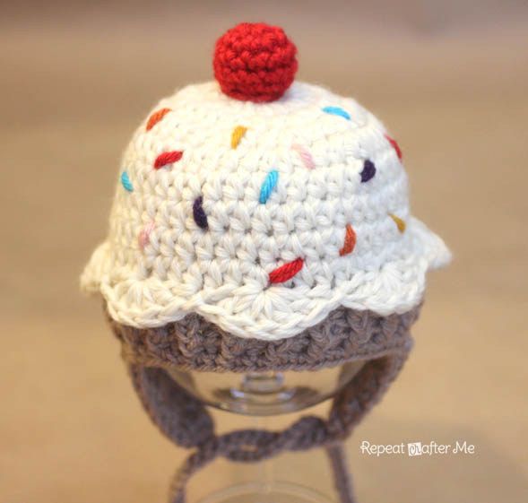 Mönstret till den här muffinshatten är gratis och finns på repeatcrafterme.com