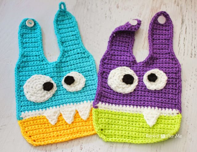 De här monsterhaklapparna hittar du ett gratis mönster till på sajten repeatcrafterme.com