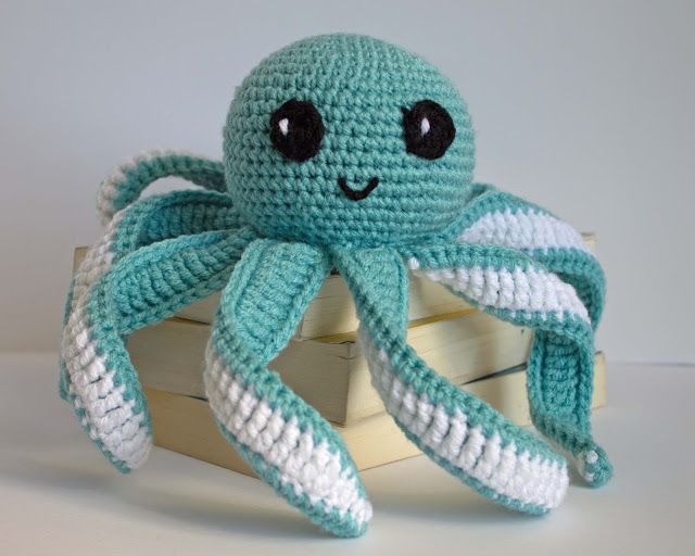 Den här gosiga bläckfisken kan du gömma en skallra i, så blir den extra rolig att leka med. På thefriendlyredfox.com hittar du gratismönstret.
