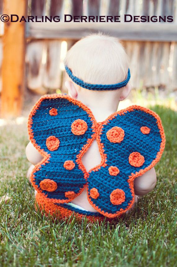 Gulligt fjärils-kit med byxa, vingar och pannband. Mönstret finns att köpa på etsy.com