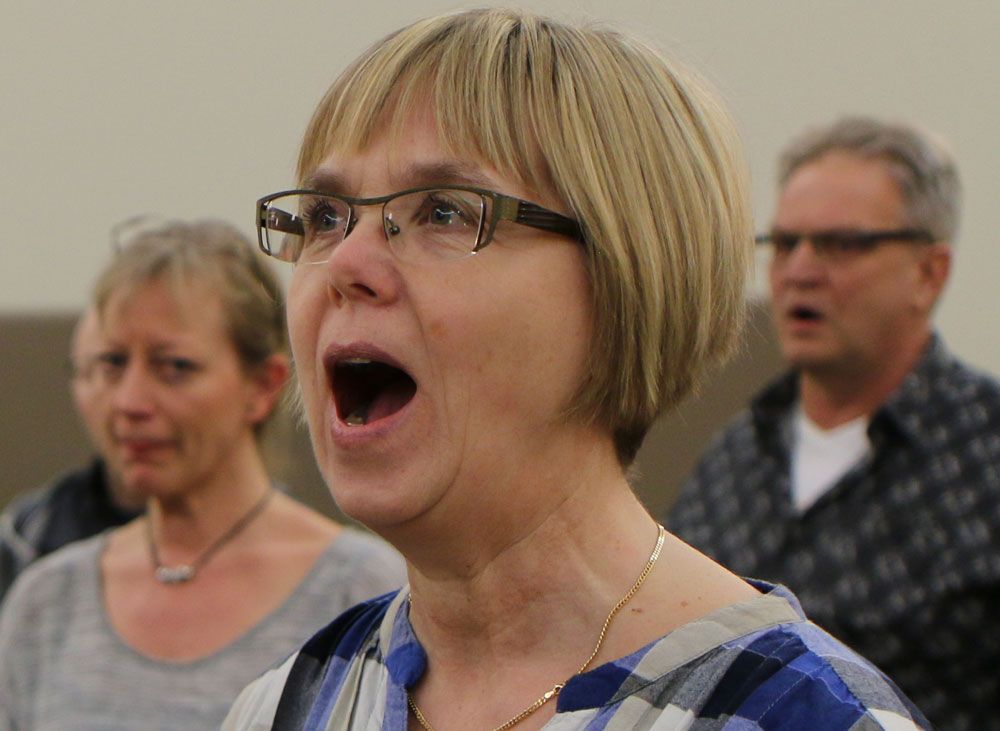 – Blodcirkulationen går alltid i gång, det märker man ju. Det blir varmt och svettigt när vi kör våra olika stämmor och låtar, det är som ett träningspass. Och man blir liksom mjukare i hela kroppen, säger röntgensjuksköterskan Eva Carlsson som tillhör Lövsångarnas sopraner.