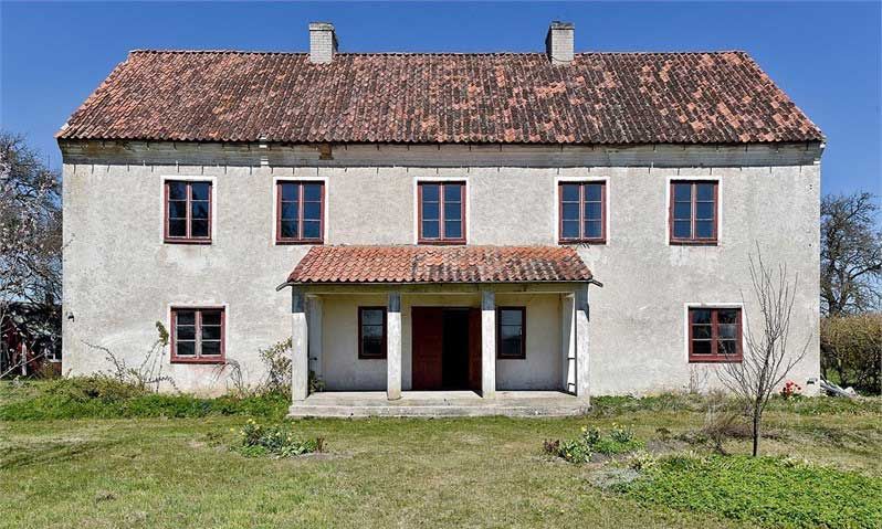 Den typiskt gotländskt kalkputsade fasaden är krackelerad och flammig på sina ställen men det hindrar inte potentialen att lysa starkt kring denna gård.