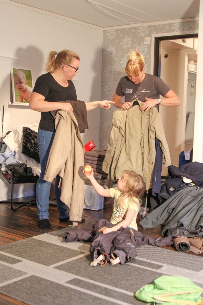 Tillsammans med Camilla går familjen igenom hela utrymmet. Prylar och kläder delas upp i olika högar, allt för att få en bra överblick. Arbetet går inte helt smärtfritt och Marcus reagerar när Gerda vill kasta ett liggunderlag.