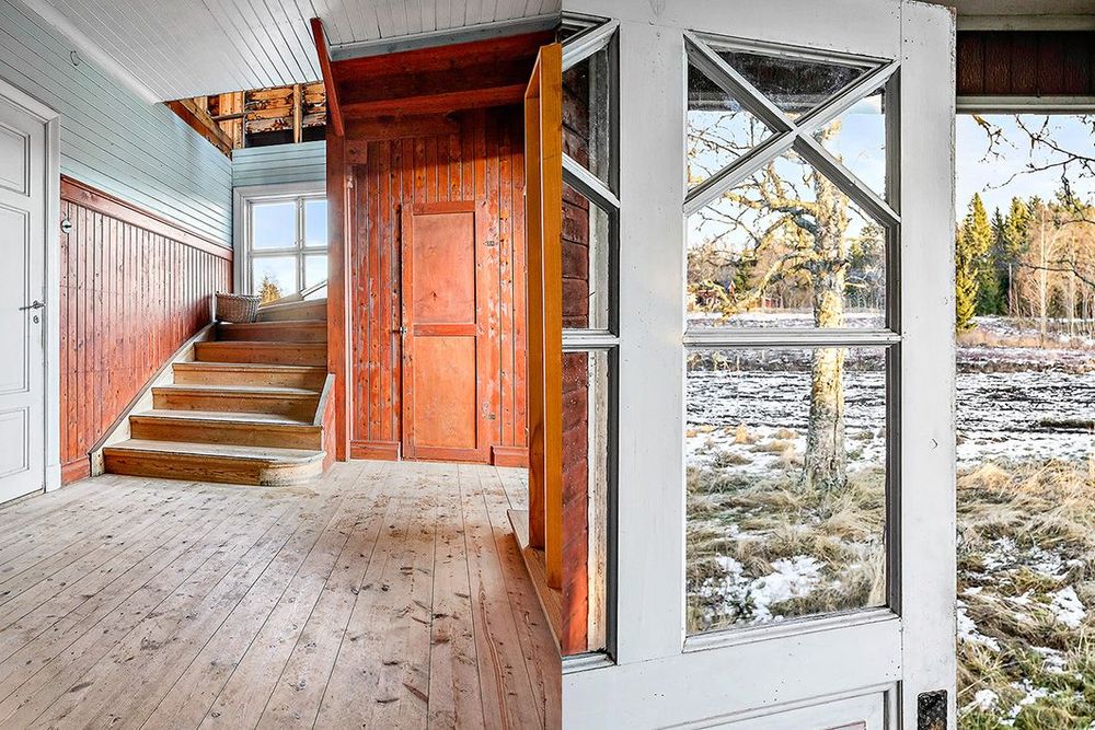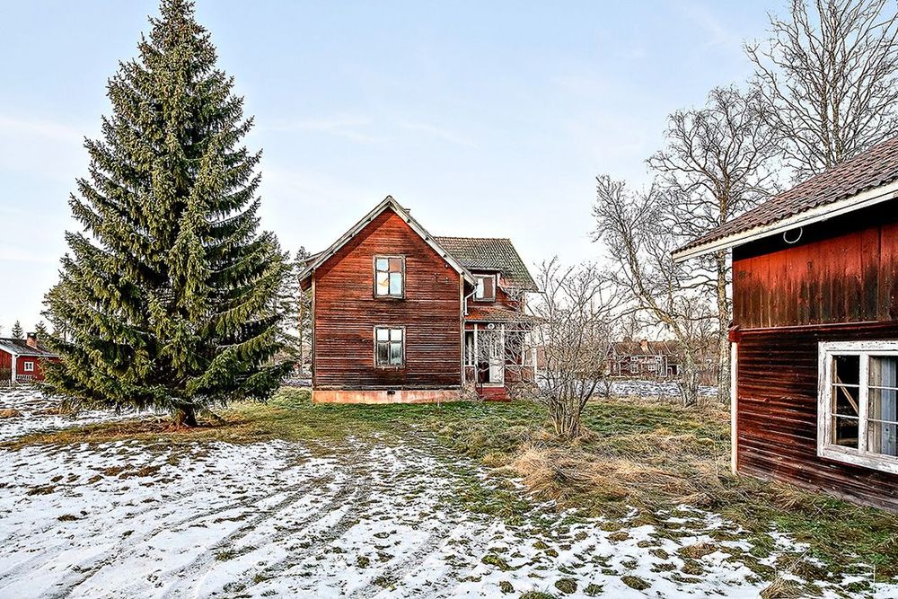 Tomten är på 3,8 hektar och det finns flera uthus som ger möjligheter för den som vill ha djur. Utgångspriset är 350 000 kr.