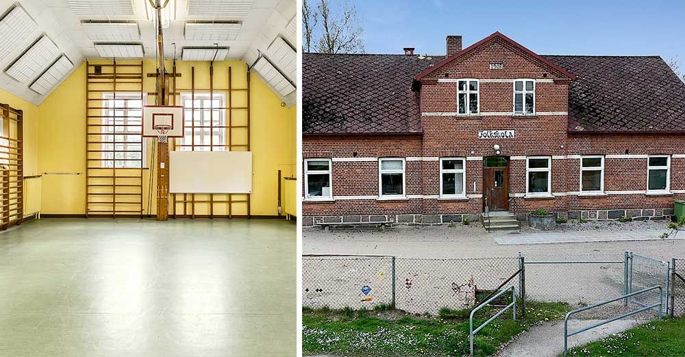 Tänk att bjuda hem vännerna på en yogalektion eller en fest i en gymnastiksal! Nu är den gamla folkskolan från 1908 i Sjöbo till salu och vi är helt sålda!