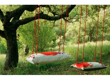 Med kuddar på trägungan blir gungstunden mycket mjukare. Källa