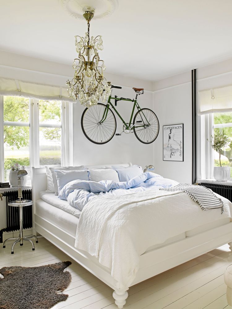 Klart cykeln ska få den uppmärksamhet den förtjänar! Lägg också märke till några andra fina detaljer – till exempel de svartmålade elementen som bryter av den ljusa inredningen.