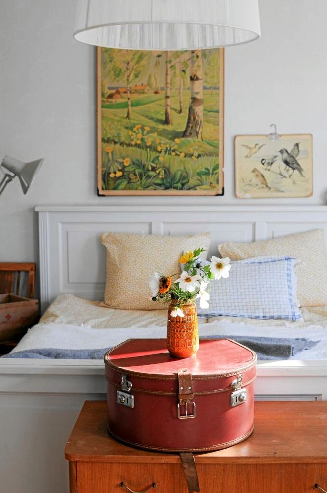 Att göra om hemma behöver inte kosta skjortan, det vet Lands bloggare Johanna i Kulla som alltid är på jakt efter nya loppisfynd. De gamla planscherna och den fina väskan ger både färg och personlighet till rummet.