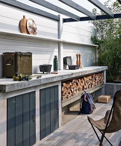 Kul sätt att förvara veden på. Blir som skulpturer på tomten. Källa