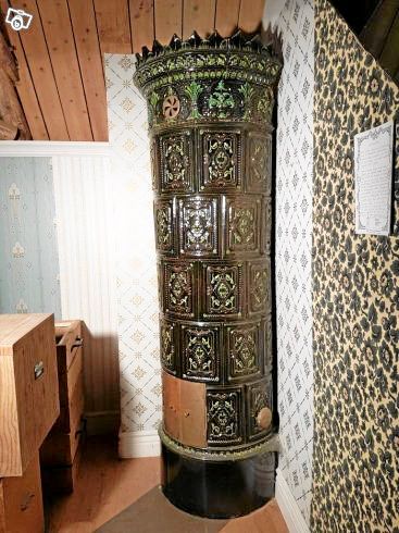 När man trodde att en kakelugn inte kunde bli gulligare, men så finns det en liten nisch som är målad med småblommiga mönster! Dessutom är kakelugnen ljusblå vilket är helt bedårande. Priset för kakelugnen är 15000 kronor.