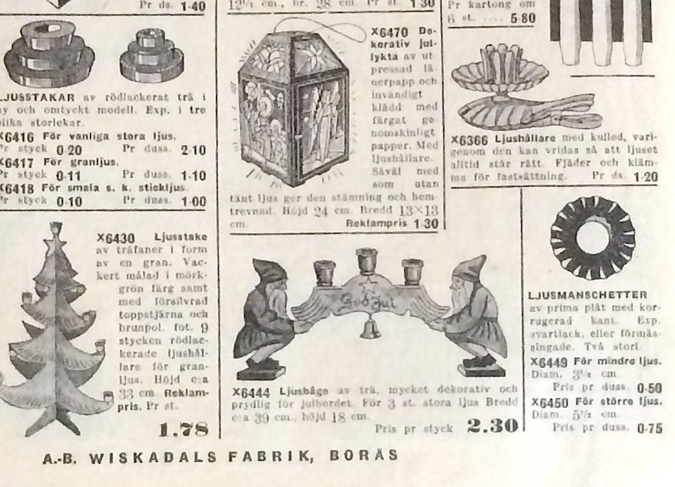 Det var ett katalogfynd. I en postorderkatalog från AB Wiskadals fabrik, Borås, fanns just det julpyntet till salu. Katalogen var från 1944/1945.