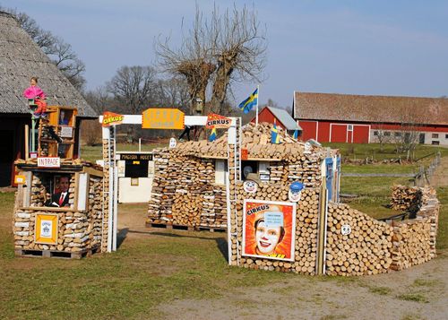 Egon Svärds årliga vedkonstverk står åter redo för besökare. Den här gången har den politiska cirkusen kommit till Gökhem i Västergötland.