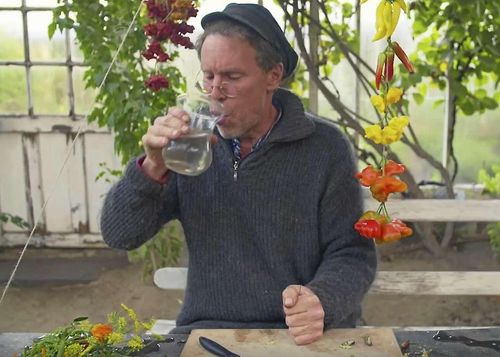 Gustav Mandelmann svalkar munnen med vatten ur blomvasen efter chilichocken. Här är sorten han smakade.