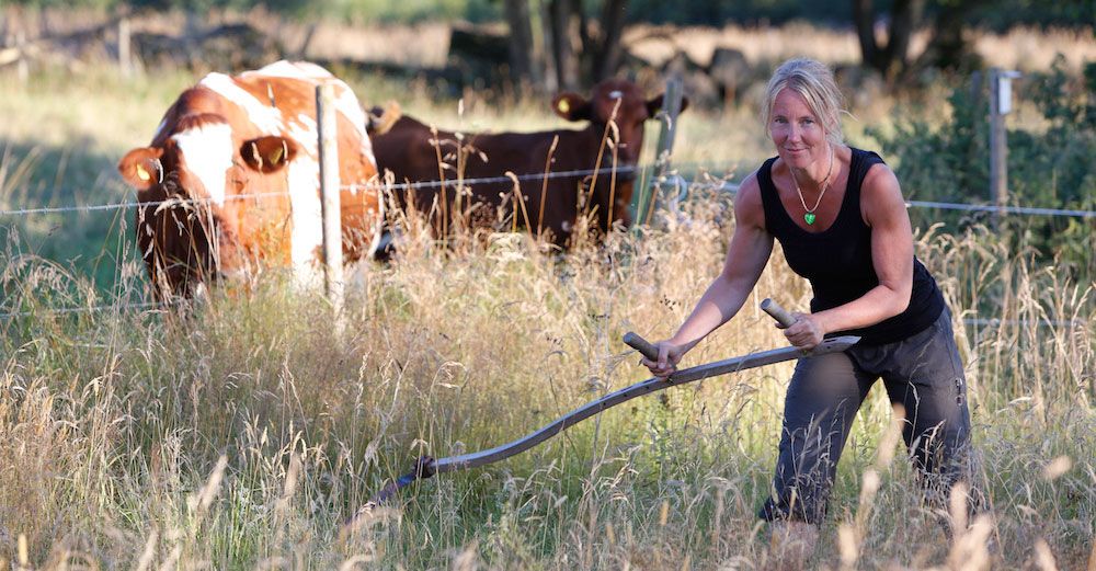 För att lyckas i jakten på örter är ängsmarkerna viktiga. Ann-Louise har metoder för att förfina och utveckla ängsmarkernas flora. Hon är fenomenal med lien och håller kurser i ängsskötsel. Vill man ha en blommande äng är timingen av yttersta vikt.