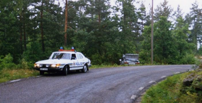 1983. Ett par kör av vägen efter att ha sladdat på löst grus.