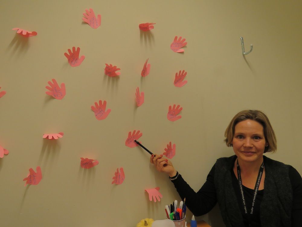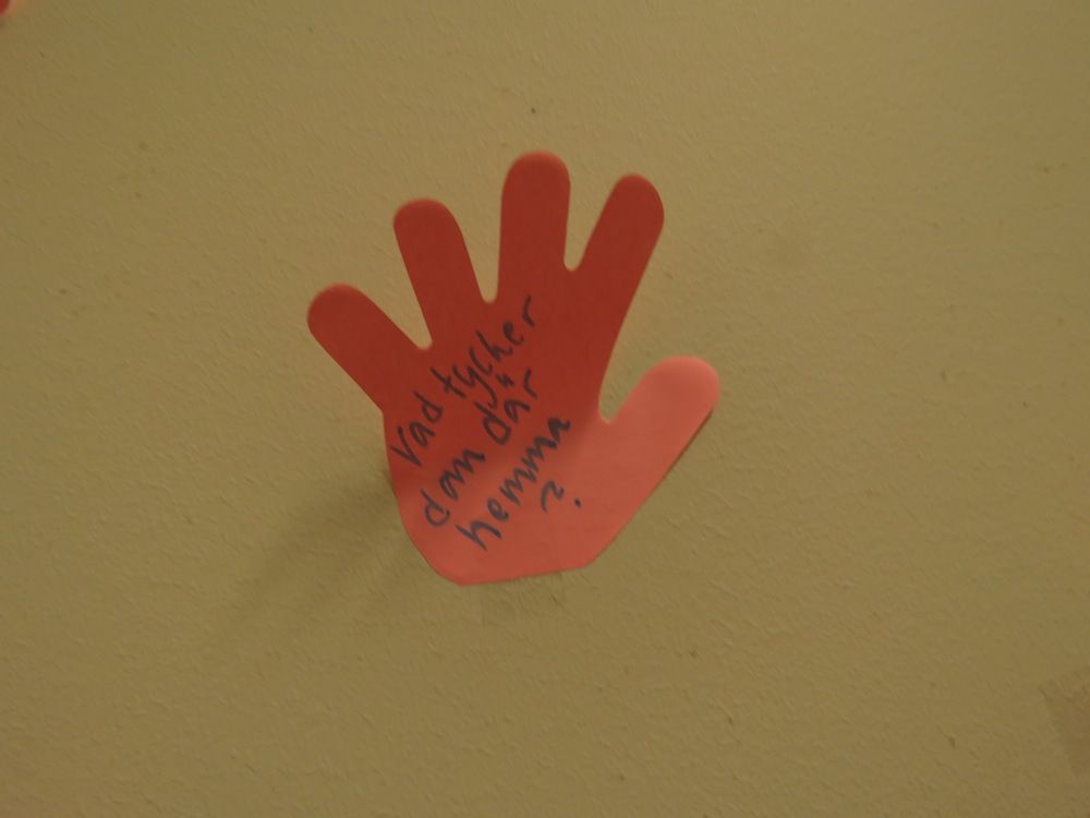 – Vi kan också köra ett intressetest, om de verkligen inte har en aning, eller läsa frågorna på de rosa händerna här på väggen tillsammans.