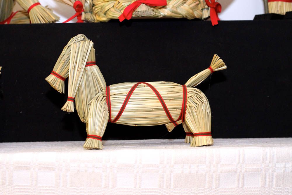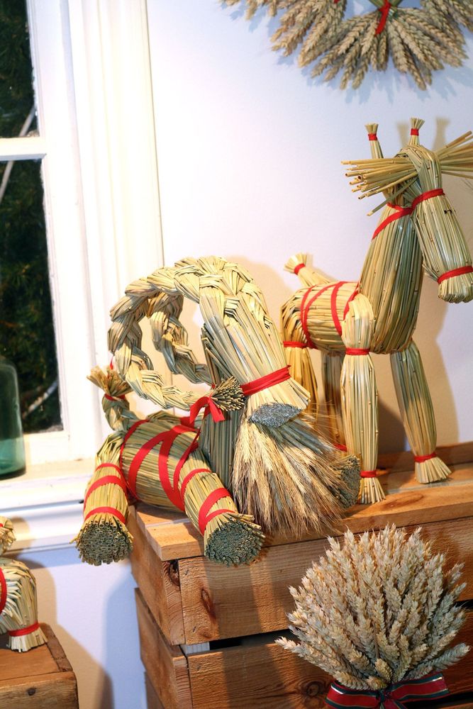 Runt omkring står halmbockar med maffiga nackar, långa flätade horn och glatt lyfta svansar, kortbenta halmtaxar, älgar med klurig blick, tomtar, grisar och hårfagra hästar.