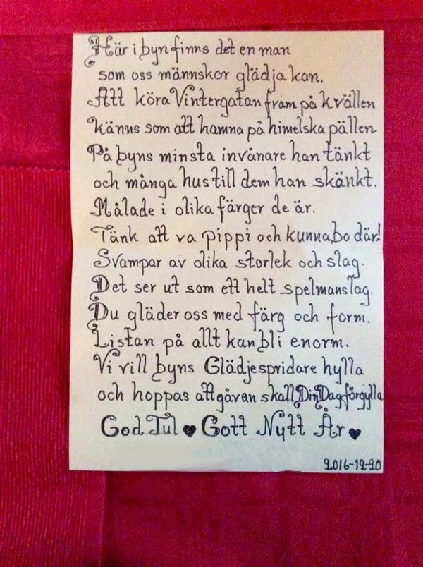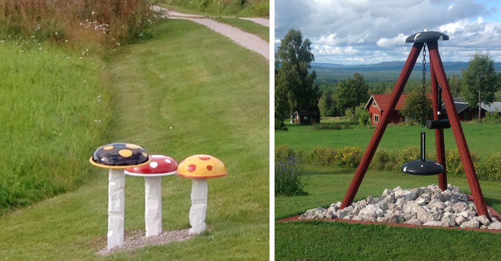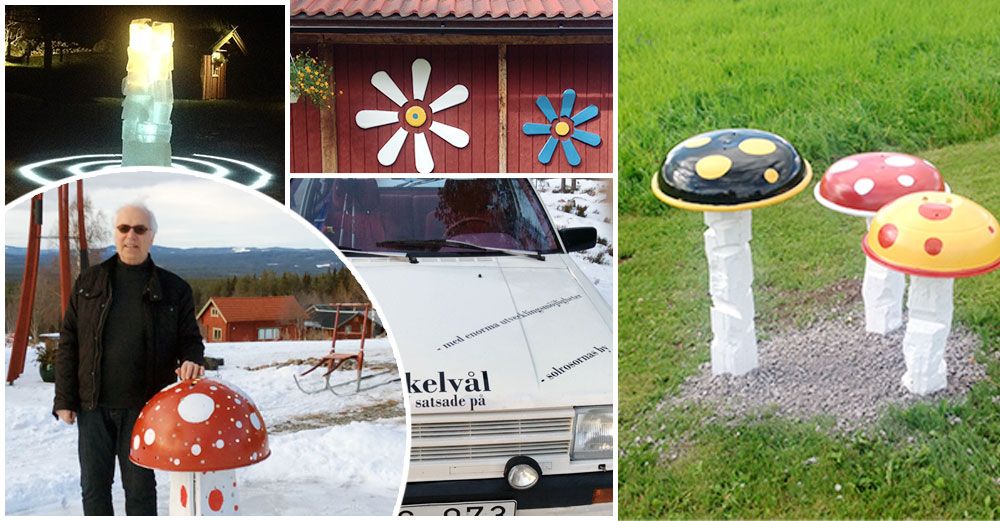 Och ovanligt blev det. Eller vad sägs om konstgjorda svampar, isskulpturer, att plantera solrosor 800 meter genom byn, måla byns telefonstolpar röda och sätta upp ett hundratal fågelholkar?
