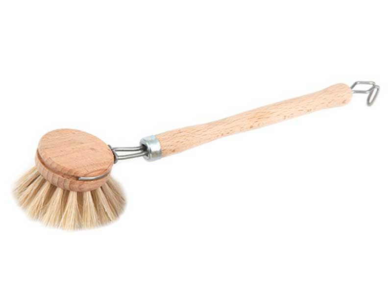Plastdiskborsten är en riktig tråkig plastförbrukningsvara som inte kan återvinnas. Byt ut mot en bortse av naturmaterial och du har en borste som håller i flera månader. Diskeffekten är utmärkt, den ger en fin retrokänsla till köket och när borsten är slut kan huvudet bytas ut mot ett ersättningshuvud. Dessutom kan metalldelarna avlägsnas och resten av borsten kan läggas på komposten.