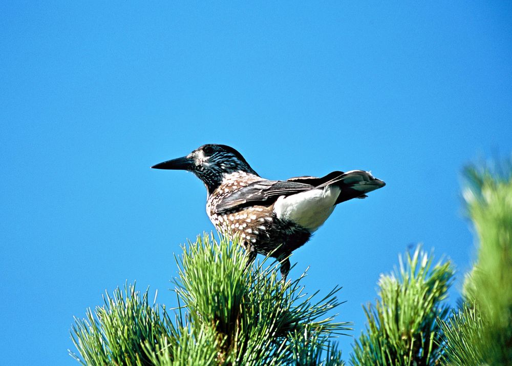 Inte många känner till den vackra nötkråkan. Fågeln stannar hela vintern och lever till stor del av hasselnötter den gömt i marken. Snötäckt mark hindrar den inte från att hitta sina förråd. I Götaland och östra Svealand finns cirka 11 000 par.