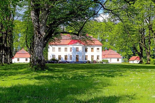 Kika in i skånska rokokoslottet Tullesbo i Sjöbo – till salu för 28 miljoner kronor.