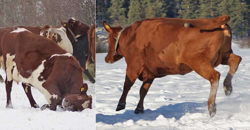 Visst gillar kossor att leka! Arla-Elins kor som leker i snön har nått en miljonpublik – nu berättar bonden mer om hur djuren roar sig när de släpps lösa.