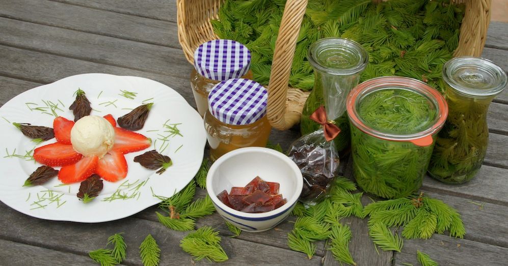Granskott och barr går fint ihop med vilt och lever. Ett hett tips: Lägg en näve granskott i saltlagen till tjälknölen. Perfekt!