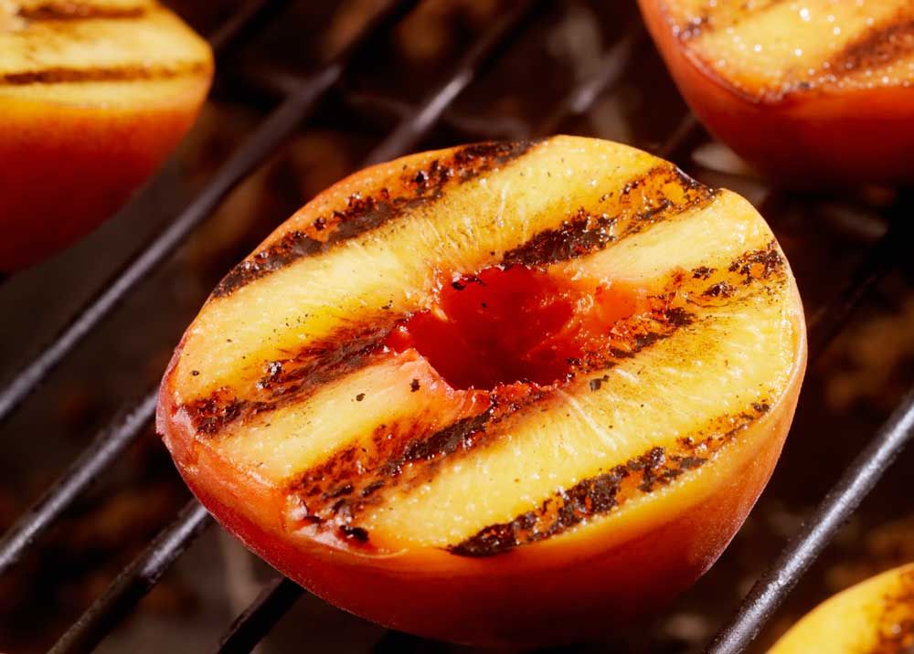 Dela mogna, söta persikor i halvor och grilla med fruktköttsidan mot glöden. Servera med vaniljglass.