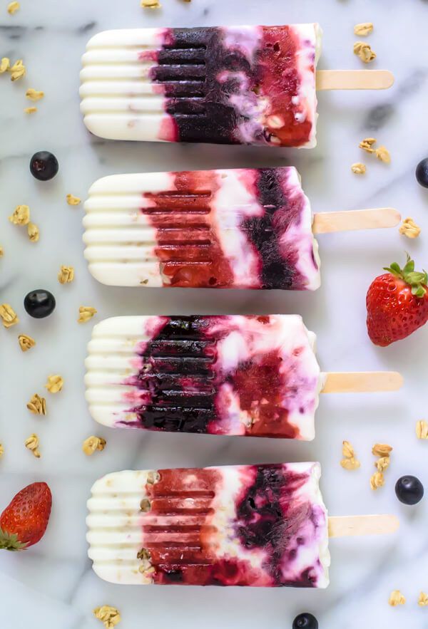 Vem behöver en skål med yoghurt till frukost när man istället kan blanda ihop allt till en glass? Den här isglassen är gjort på yoghurt, bär och granola.