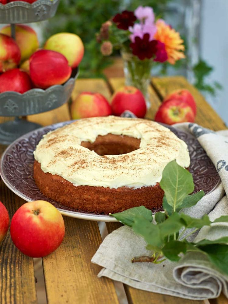 3. Äppelkaka de lux med solrosfrön och färskostglasyr