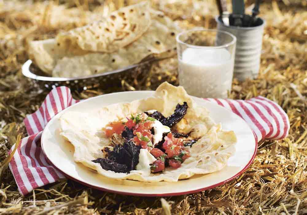 5. Grädda en tortilla i taget. Lägg över dem efterhand på ett fat. Täck över med en ren kökshandduk så håller de sig varma.