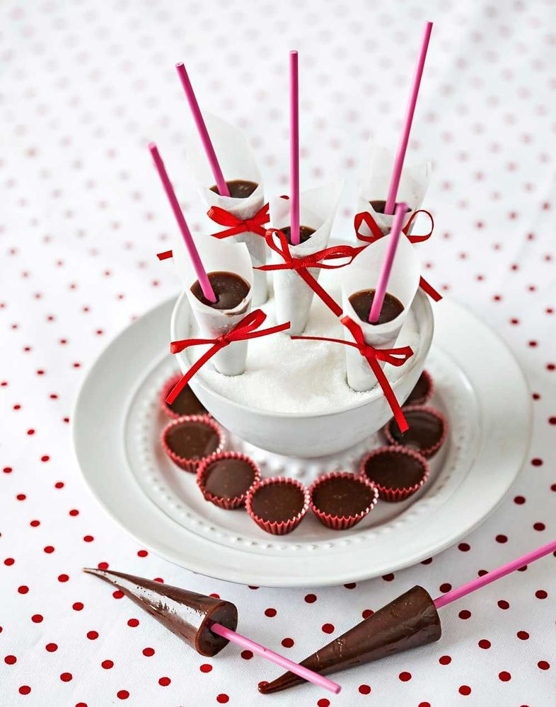 4. Klubbor: Häll smet i strutarna med en liten kanna med pip. Låt dem stelna något innan du trycker ner klubbpinnarna. Låt dem sedan stelna i kylen.