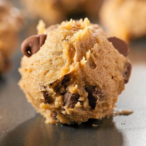 Små bollar av kakdeg, eller cookie dough, doppade i smält mjölkchoklad är ett perfekt bjudgodis på nästa fika.