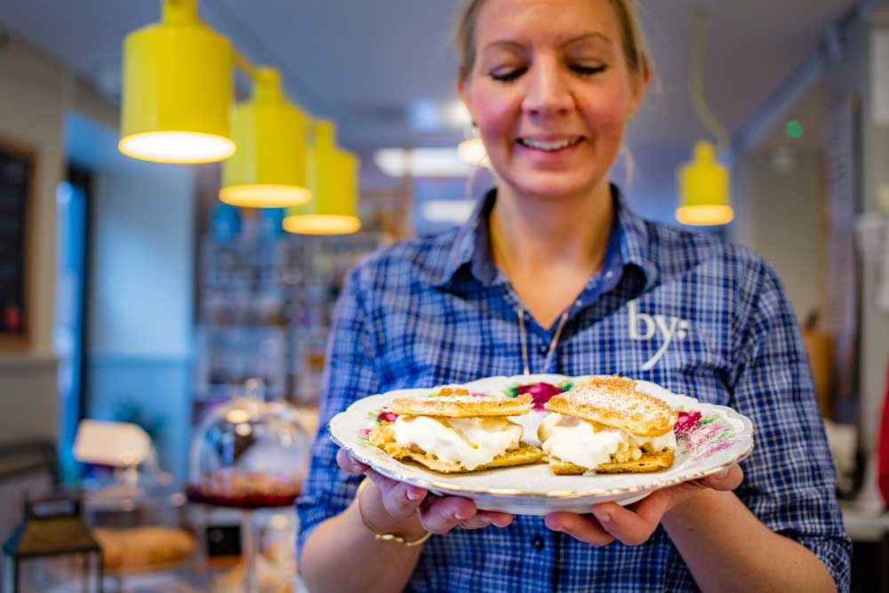 Våffelsemla eller som vi kallar den: vefflan, är framtagen i samarbete mellan Land.se och By:fiket. Linda Sundin, platschef på By:fiket har tagit fram receptet.