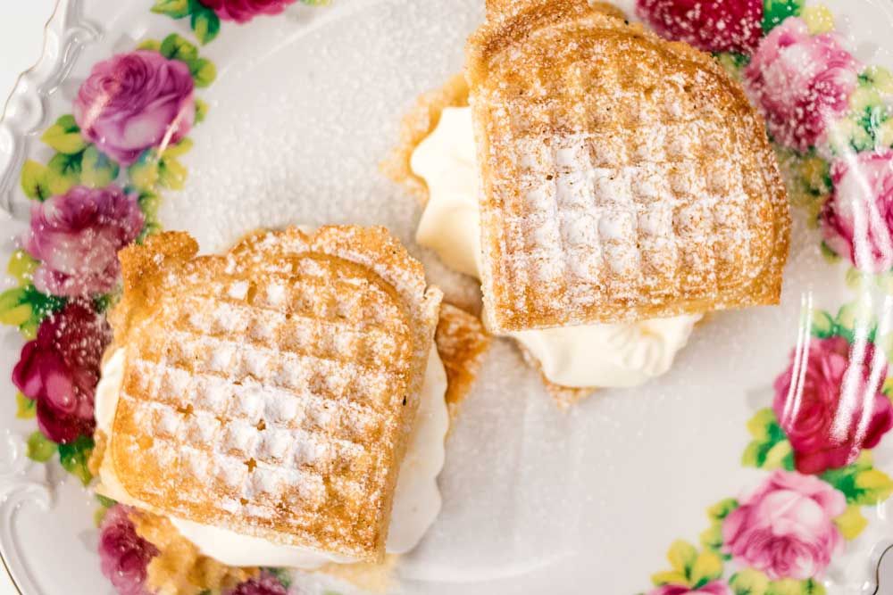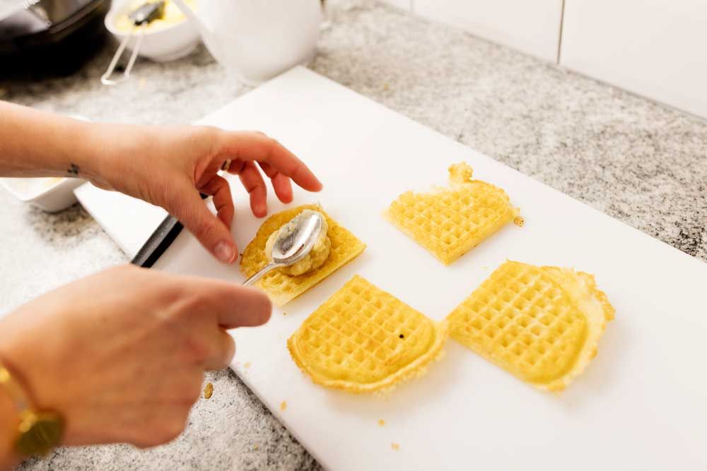 Våfflor är gott och semlor är gott. Underligt nog är en korsning mellan de två godare än summan av de båda. Något händer när vaniljgrädde och mandel möter frasig kardemummavåffla som smaklökarna inte räknat med.