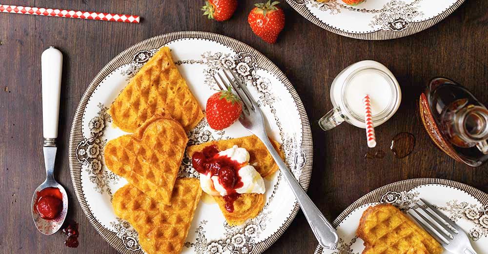 3. Hetta upp fett i våffeljärnet, se till att smörja både ovansidan och undersidan, och grädda gyllenbruna våfflor.