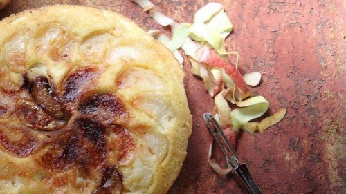 En söt äppelkaka går alltid hem, men gör sig extra bra i skördetider. Det här är en förenklad variant med en sockerkaksliknande smet.