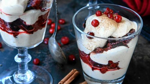 Trolla fram lyxigaste desserten med färdigköpt brownie, len kolasmak, lingon och ostkräm. Här är supersnabba receptet.