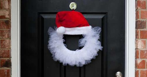 Skippa gran och kottar, häng istället en härlig tomtekrans på dörren, med tyll som skägg.