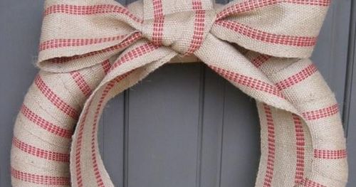Ett fint grovt band och en stomme räcker, linda runt och limma eventuellt på baksidan. Gör en stor rosett och din juliga krans är klar!