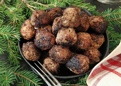 Caroline Hofbergs vackra julbord smakar lantlig tradition – precis som vi vill ha det. Med kryddpeppar och ansjovis får de goda små älgköttbullarna en härlig smak som passar utmärkt i juletid.