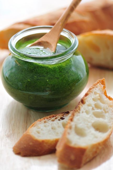 Kör dem i mixern tillsammans med några kvistar basilika, en vitlöksklyfta, någon deciliter olivolja, pinjenötter (gärna rostade) samt lite riven parmesan. Addera salt och peppar efter smak.