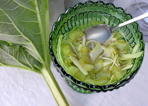 Gör på samma sätt som med pressgurka, men byt gurkan mot rabarber. Gott och annorlunda tillbehör till din grillmiddag.