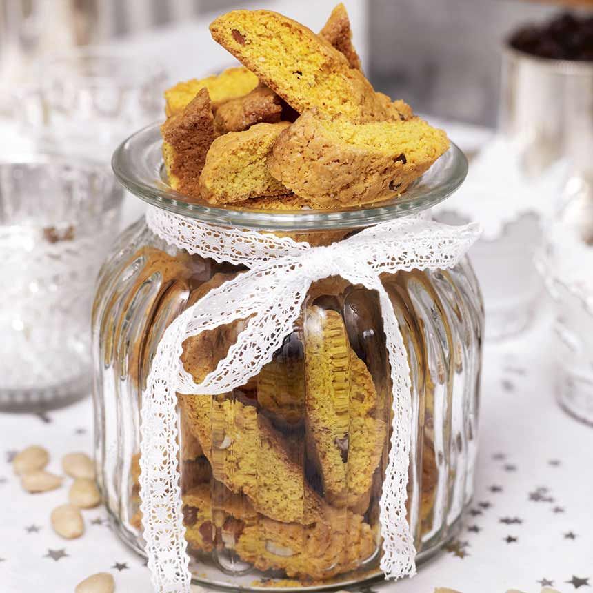 Gyllengula saffransbiscotti är fint att ha framme i en vacker glasburk, här hittar du receptet!
