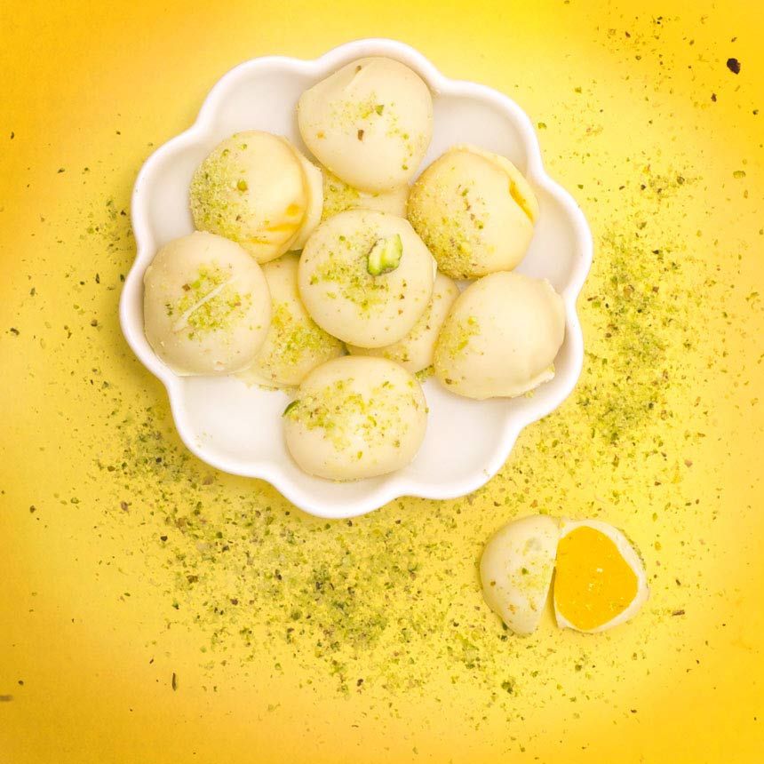 De här tryfflarna är enkla att göra och får sin goda smak av saffran, vit choklad och kardemumma. Här är receptet.