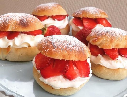 Den här somriga semlan kan man inte bara undgå att smaka på! Bjud hem dina vänner eller din familj och låt dom smaka på den här underbart goda jordgubbssemla.