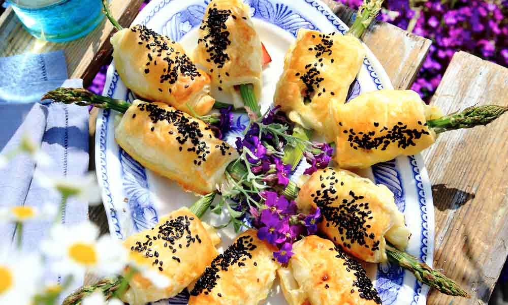 5. Inbakad sparris med rökt skinka