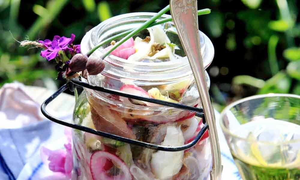 1. Matjessill i fänkåls- och rödlökslag